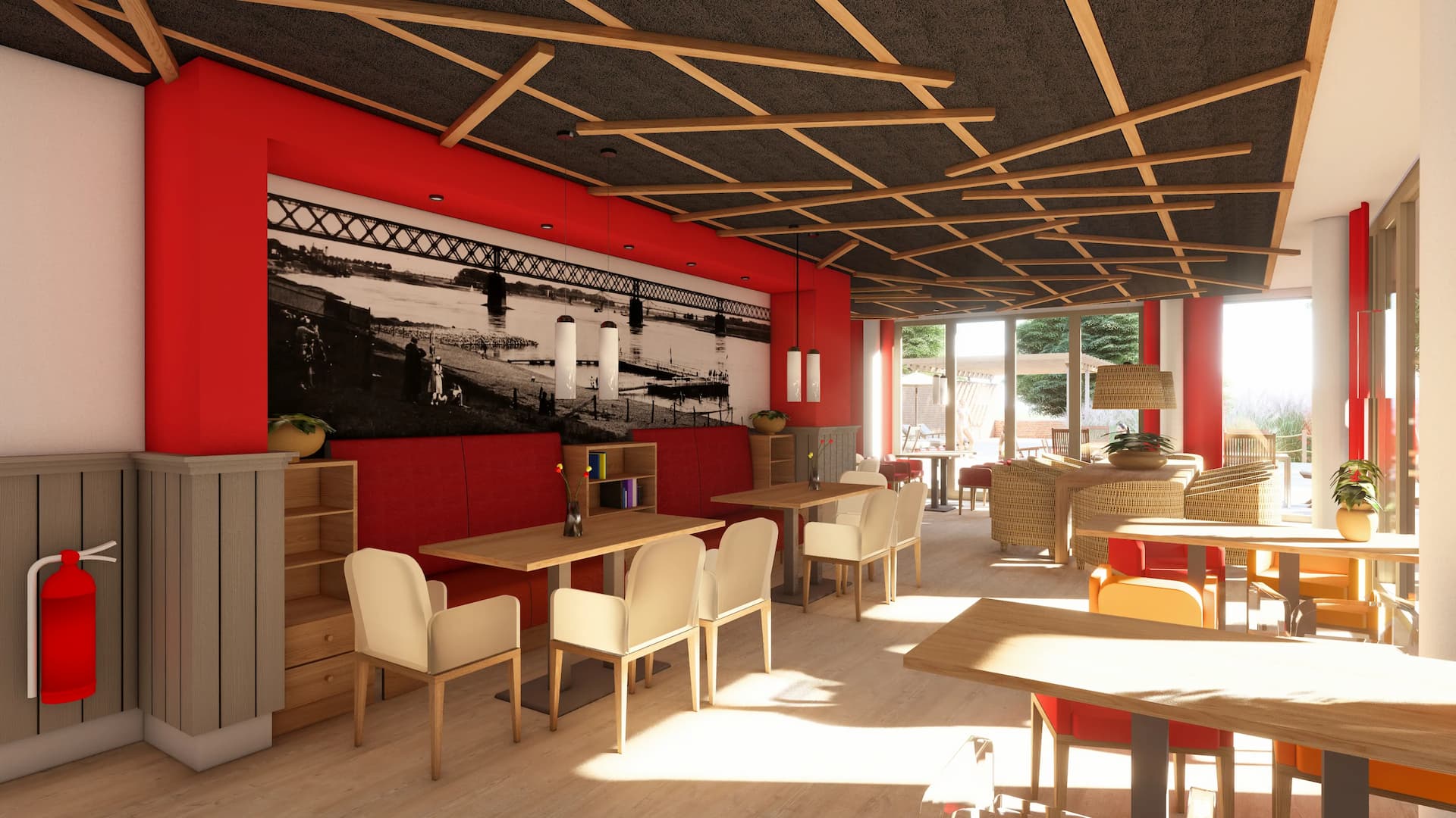 Gastronomie im Eingangsbereich (auch für externe Gäste)